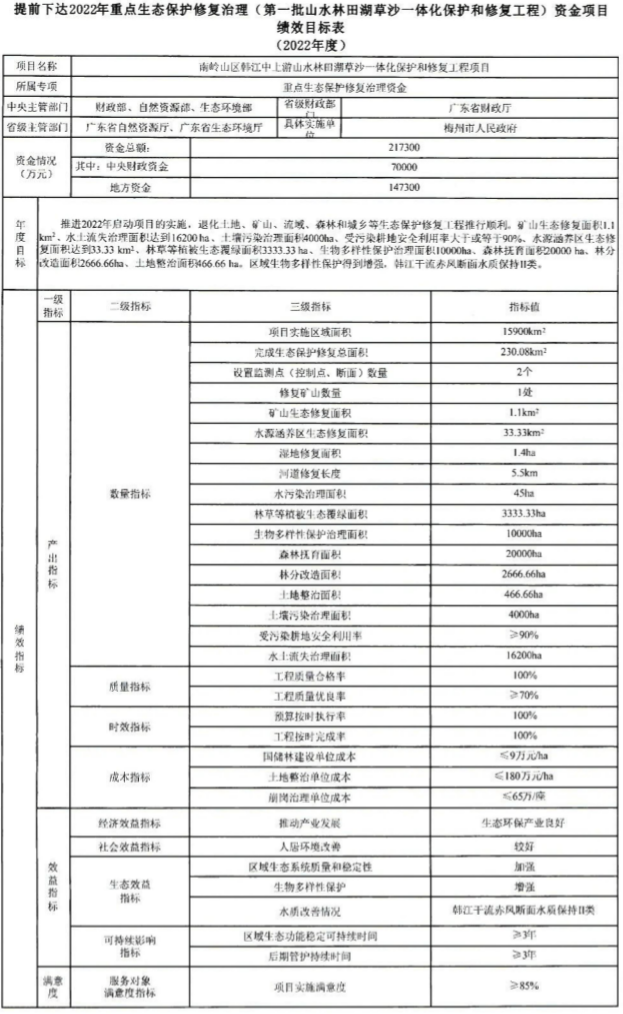 廣東省財政廳關(guān)于提前下達中央財政2022年重點生態(tài)保護修復(fù)治理資金預(yù)算的通知 粵財資環(huán)〔2021〕107號 梅州市財政局: 為均衡預(yù)算執(zhí)行進度,提高預(yù)算編制的完整性,根據(jù)《財政部關(guān)于提前下達2022年重點生態(tài)保護修復(fù)治理資金預(yù)算的通知》(財資環(huán)〔2021〕113號)和預(yù)算管理有關(guān)規(guī)定,現(xiàn)提前下達中央...
