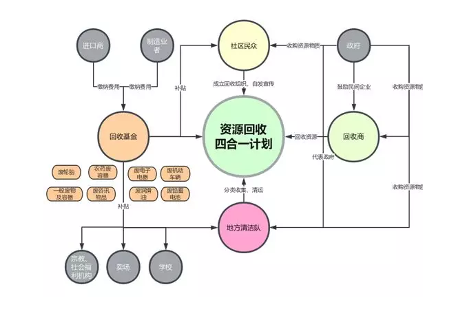 回收基金:督導(dǎo)責(zé)任業(yè)者繳交回收清除處理費(fèi),成立基金;運(yùn)用獎(jiǎng)助及補(bǔ)貼機(jī)制,推進(jìn)資源回收處理體系建設(shè);建立有效回收制度,暢通回收處理管道。