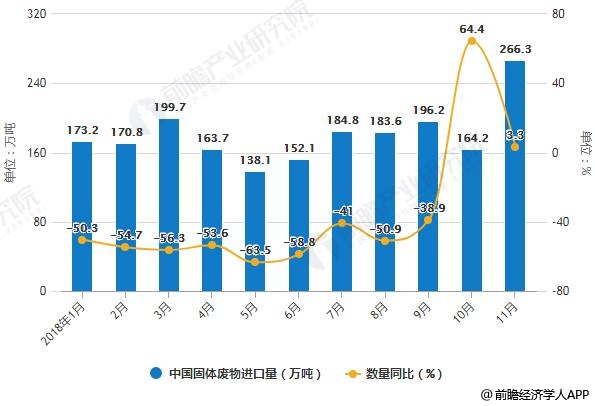 11月中國固體廢物進口量大幅度增長