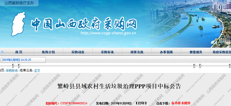 原標題:山西省繁峙縣農(nóng)村垃圾治理PPP項目中標公示出爐