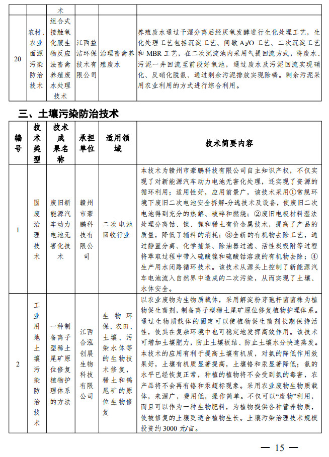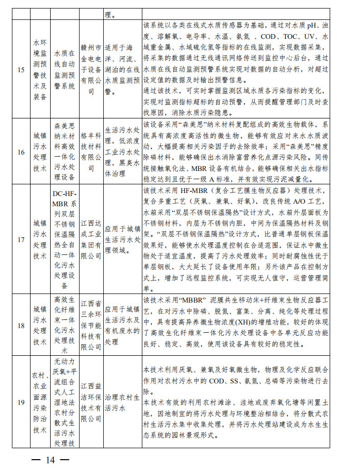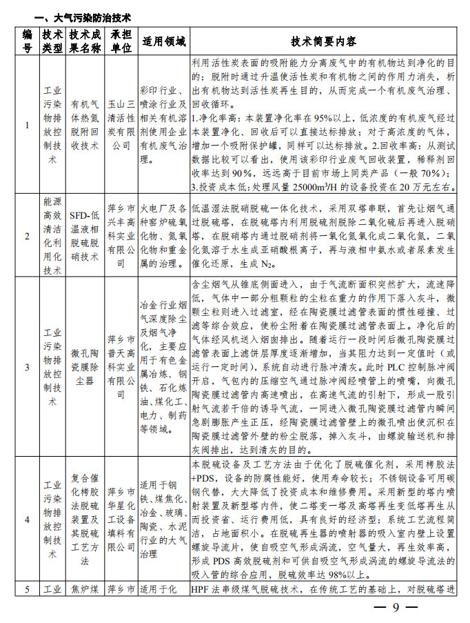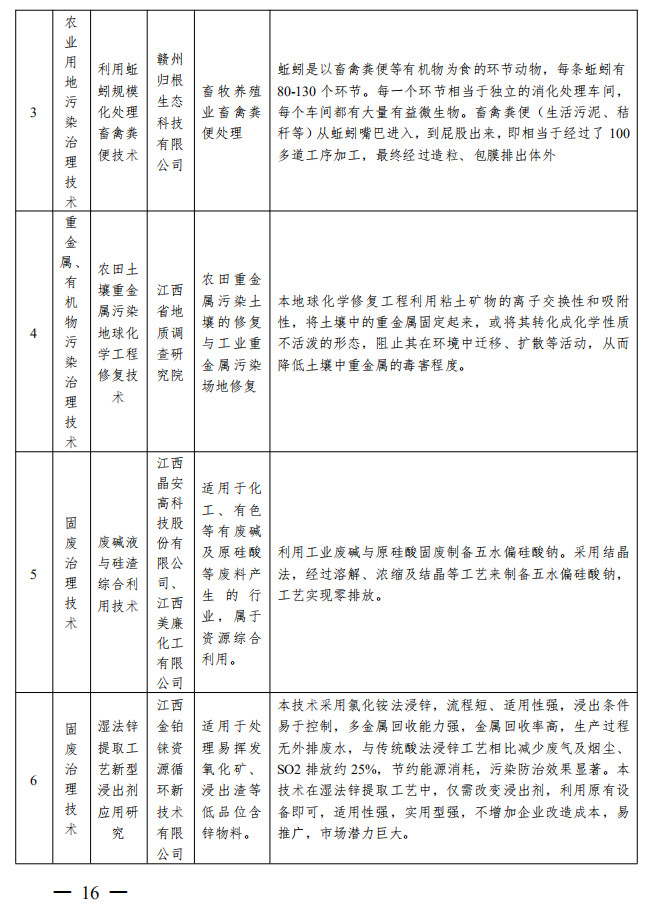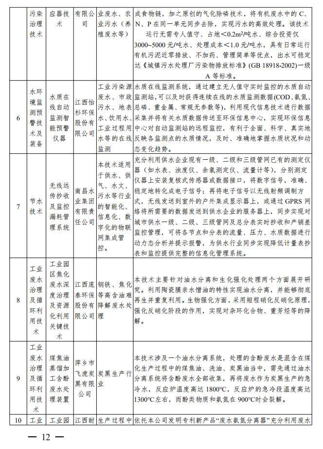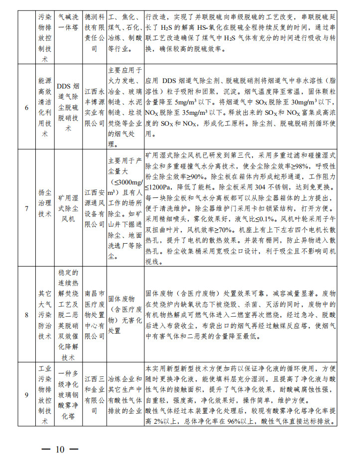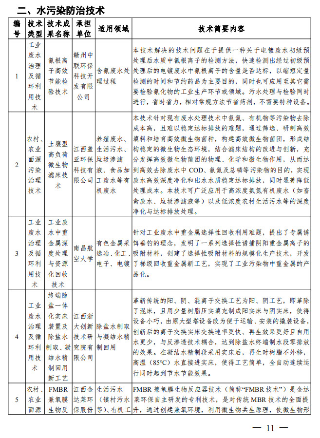 附件:江西省(大氣、水、土壤)污染防治先進適用技術指導目錄(2018年修訂版)