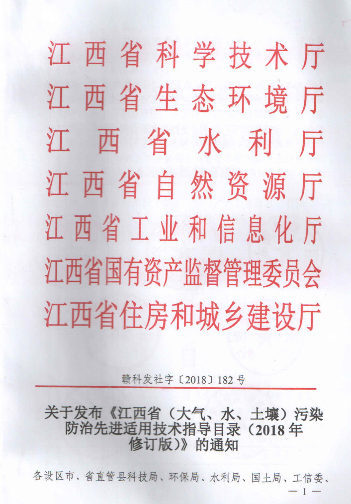 近日,江西省江西省工業(yè)和信息化廳、江西省住房和城鄉(xiāng)建設廳、江西省科學技術廳、江西省水利廳、江西省生態(tài)環(huán)境廳、江西省國有資產(chǎn)監(jiān)督管理委員會等多部門聯(lián)合發(fā)布了江西?。ù髿?、水、土壤)污染 防治先進適用技術指導目錄(2018年修訂版),全文如下: