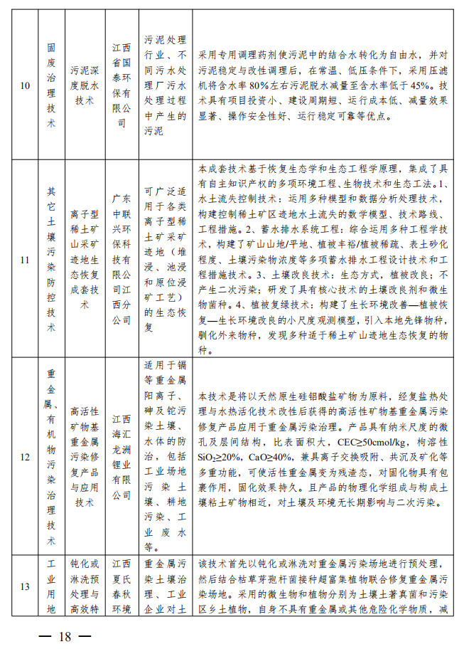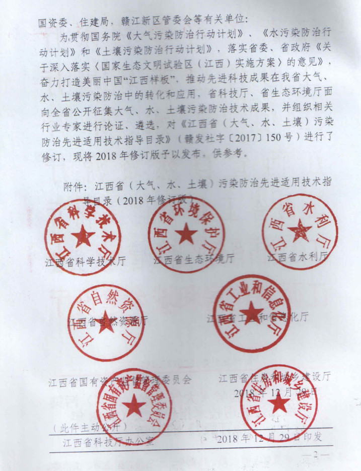 關于發(fā)布《江西?。ù髿?、水、土壤)污染 防治先進適用技術指導目錄(2018年 修訂版)》的通知