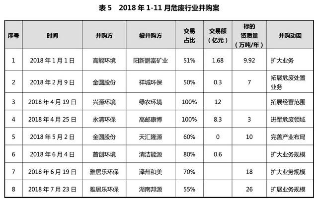 高門(mén)檻、高利潤(rùn)、嚴(yán)監(jiān)管、大缺口”的危廢處理行業(yè)正在成為各路資本追逐的“香餑餑”。不完全統(tǒng)計(jì)結(jié)果顯示,僅2018年全國(guó)危廢行業(yè)兼并購(gòu)數(shù)量就超過(guò)10起,資本的介入也加快了行業(yè)整合。