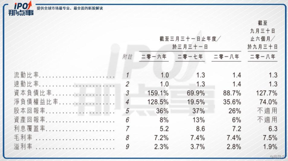 從一些披露的關鍵指標看,公司近幾年的資本負債率較高,2018年中期還攀升至127.7%。同時毛利率、凈利率均明顯偏低: