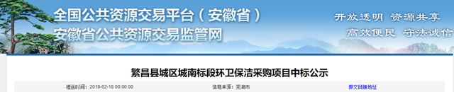 原標題:徐工環(huán)境中標5321萬安徽繁昌縣環(huán)衛(wèi)保潔項目