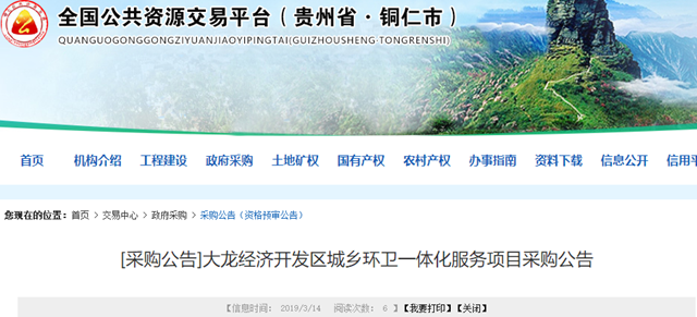 原標(biāo)題:貴州大龍經(jīng)濟(jì)開(kāi)發(fā)區(qū)3.7億城鄉(xiāng)環(huán)衛(wèi)一體化項(xiàng)目招標(biāo)
