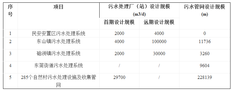 污水處理廠(站)及管網(wǎng)等設(shè)計(jì)規(guī)模一覽表