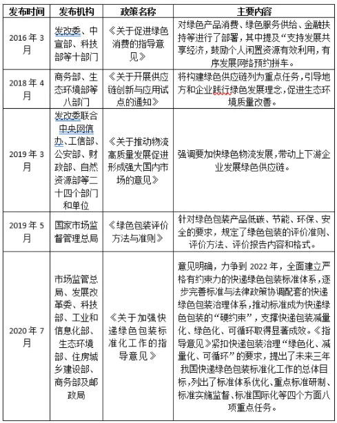 近年來(lái),對(duì)于電子商務(wù)行業(yè),我國(guó)政府部門(mén)發(fā)布系列相關(guān)政策,指引和倡導(dǎo)電商企業(yè)在綠色消費(fèi)、綠色包裝、綠色物流、綠色供應(yīng)等方面做出行動(dòng)來(lái)減少碳排放量。主要政策梳理如下: