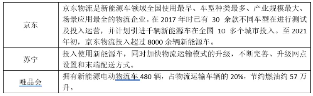 綠色物流即通過(guò)充分利用物流資源,采用先進(jìn)的物流技術(shù),合理規(guī)劃和實(shí)施運(yùn)輸、儲(chǔ)存、裝卸、搬運(yùn)、包裝、流通加工、配送、信息處理等物流活動(dòng),降低物流對(duì)環(huán)境影響的過(guò)程。各大電商企業(yè)堅(jiān)持綠色物流理念,探索綠色物流創(chuàng)新,打造綠色物流全過(guò)程。現(xiàn)階段,多數(shù)電商企業(yè)在打造綠色物流的過(guò)程中主要采取的方式為更換運(yùn)輸車(chē)輛,采用碳排放量更低的新能源運(yùn)輸車(chē)輛,從而有效減少燃油消耗量,進(jìn)一步減少物流環(huán)節(jié)的主要碳排放量。