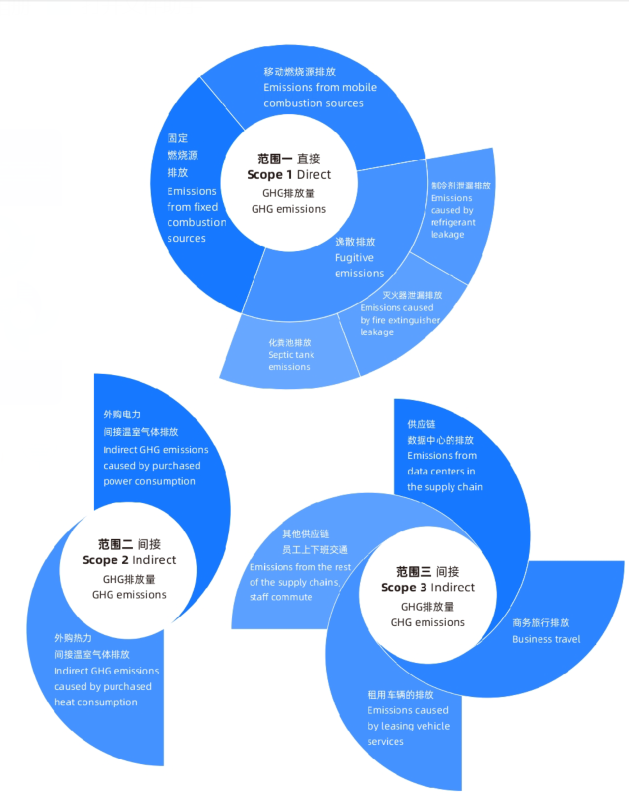 范圍三:供應(yīng)鏈上的相關(guān)間接排放,包括租用數(shù)據(jù)中心服務(wù)、員工商務(wù)旅行、員工中通勤租用車輛等所導(dǎo)致的排放。
