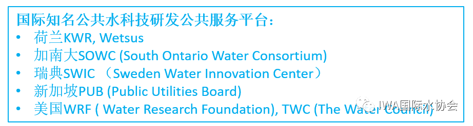 圖. 數(shù)字化中的顛覆性創(chuàng)新 (圖源:Cognizant 20-20 insights) 水務(wù)行業(yè)具備天然的公共服務(wù)基本屬性。在政策性資金的支持下,有效利用社會資金,針對共性需求成立公共創(chuàng)新平臺,是目前國際上水科技發(fā)達國家的普遍路徑。筆者由于工作的原因,有幸曾拜訪過很多國際知名的公共創(chuàng)新平臺(如下圖),并和他們有過深入交流,他們的初心都是希望能為本國甚至全球同行尋找共性的創(chuàng)新解決方案,同時孵化推動中小型創(chuàng)新技術(shù)企業(yè)的發(fā)展和壯大。