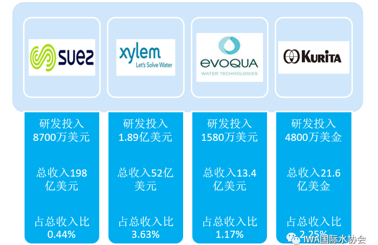 圖. 2018年四家國際知名水科技公司的R&D投入統(tǒng)計