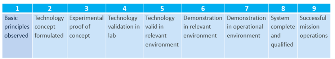 上世紀(jì)70年代美國NASA為了評估新技術(shù),提出了技術(shù)成熟度(Technology Readiness Level- TRL)的概念。技術(shù)成熟度是指科技成果的技術(shù)水平、工藝流程、配套資源、技術(shù)生命周期等方面所具有的產(chǎn)業(yè)化實用程度。1995年NASA起草并發(fā)布《技術(shù)成熟度白皮書》,共分為9個等級(如下圖): 然而常被應(yīng)用于評價航空航天及軍事裝備的TRL,并不太適用于水行業(yè)。在航空航天及軍事領(lǐng)域,一個新技術(shù)很可能只有很少的成功示范(如2-3個)就可能被認(rèn)為是成熟技術(shù)(TRL對應(yīng)8-9)。而在水務(wù)行業(yè),若一個技術(shù)只有很少的示范,TRL可能達到了6-7,但由于無法形成標(biāo)準(zhǔn)規(guī)范指南,無法形成大規(guī)模的行業(yè)應(yīng)用,TRL往往止步于7,無法邁向9。我們身邊有很多做了1-2個示范工程的新技術(shù)和新工藝,但后續(xù)鮮有在行業(yè)中被大規(guī)模應(yīng)用。因此結(jié)合水行業(yè)的創(chuàng)新提點和需求,需要提出一套適用的方法體系。