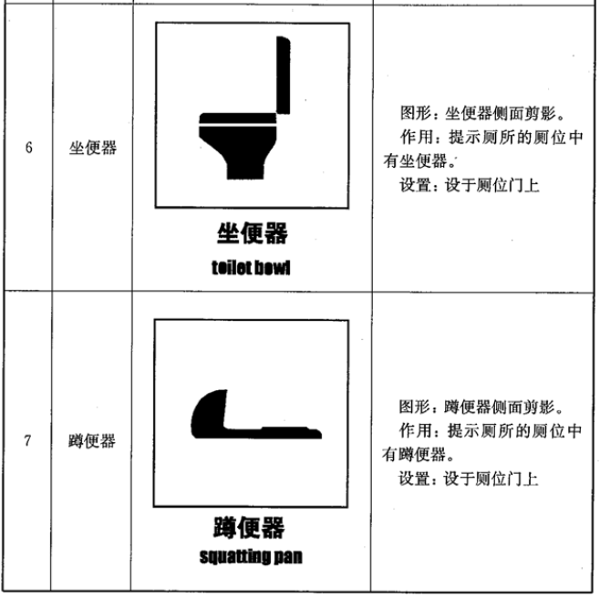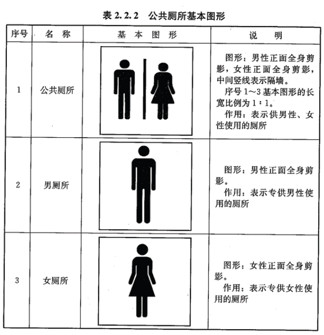 按照標準CJJ/T 125-2008《環(huán)境衛(wèi)生圖形符號標準》,公廁相關(guān)的主要圖形如上圖所示。