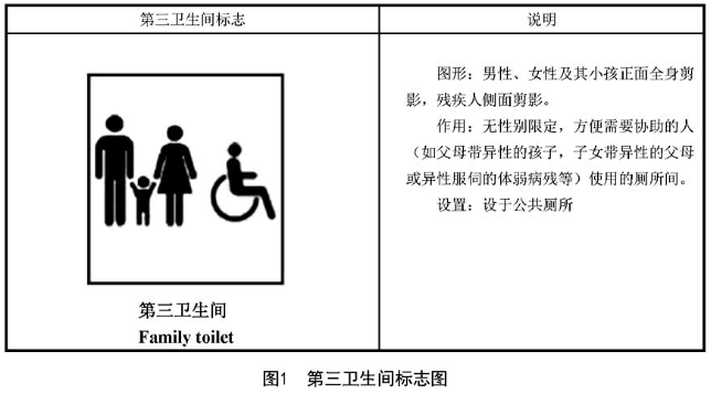 按照標準北京市公共廁所建設(shè)規(guī)范 DB11/T190-2016,第三衛(wèi)生間標志如上圖。