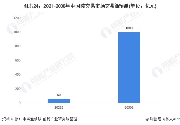 由于我國(guó)的工業(yè)大體量和高數(shù)量碳排放,由此可見(jiàn)我國(guó)未來(lái)碳交易市場(chǎng)容量將是巨大的,有很大的發(fā)展空間。預(yù)計(jì)2021年我國(guó)碳交易市場(chǎng)成交量或?qū)⑦_(dá)到2.5億噸,為2020年各個(gè)試點(diǎn)交易所交易總量的3倍,成交金額將達(dá)60億元。隨著全國(guó)統(tǒng)一的碳排放交易市場(chǎng)的建立,未來(lái)我國(guó)碳市場(chǎng)覆蓋范圍將逐步擴(kuò)大,到碳達(dá)峰的2030年累計(jì)交易額或?qū)⒊^(guò)1000億元。