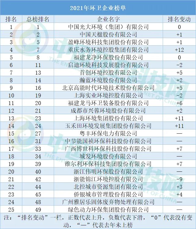 從排名可見環(huán)衛(wèi)行業(yè)發(fā)展之迅猛。當(dāng)然,也有啟迪環(huán)境、上海實(shí)業(yè)、浙能錦江三家企業(yè)排名出現(xiàn)下降。對此,只能這樣說,當(dāng)所有人都在拼命前行,哪容你略作停息!