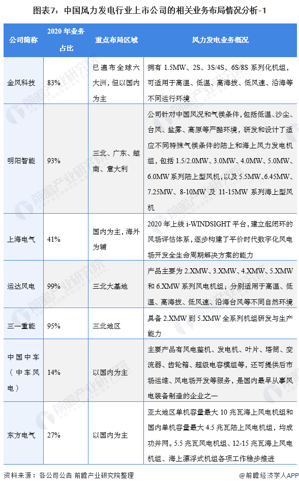 2、 風力發(fā)電行業(yè)上市公司業(yè)務(wù)布局對比