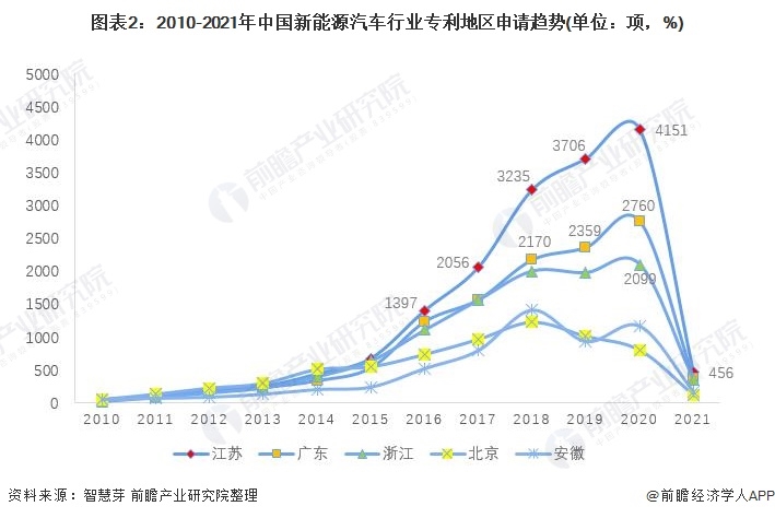 1、江蘇省成為中國(guó)新能源汽車專利申請(qǐng)最多的省份