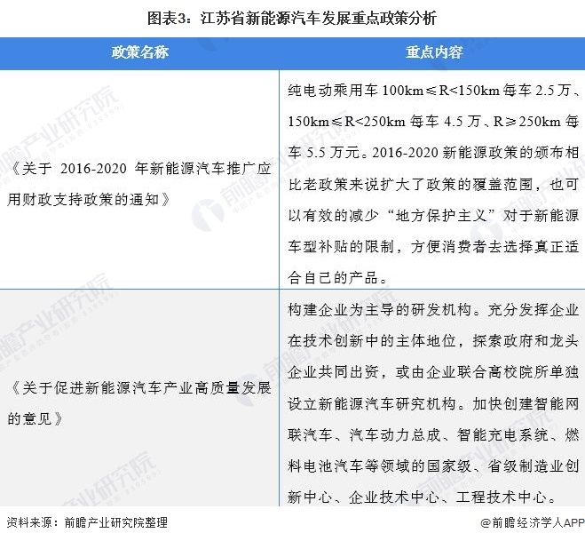 江蘇省政策方面較為重視新能源汽車的發(fā)展,在《關(guān)于促進(jìn)新能源汽車產(chǎn)業(yè)高質(zhì)量發(fā)展的意見》中提到,構(gòu)建企業(yè)為主導(dǎo)的研發(fā)機(jī)構(gòu)。充分發(fā)揮企業(yè)在技術(shù)創(chuàng)新中的主體地位,探索政府和龍頭企業(yè)共同出資,或由企業(yè)聯(lián)合高校院所單獨(dú)設(shè)立新能源汽車研究機(jī)構(gòu)。
