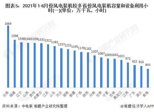 按照利用小時(shí)來(lái)看,2021年1-6月,云南、福建和遼寧的風(fēng)能利用小時(shí)最高;其中云南的利用小時(shí)突破1500小時(shí),位列全國(guó)第一。并且有10個(gè)省市的風(fēng)能利用小時(shí)超過(guò)1200小時(shí)。