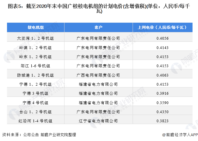 同時,電價是影響發(fā)電企業(yè)獲利規(guī)模的重要因素。根據(jù)公司披露的信息顯示,截至2020年12月31日,中國廣核核電機(jī)組的計(jì)劃電價(含增值稅):