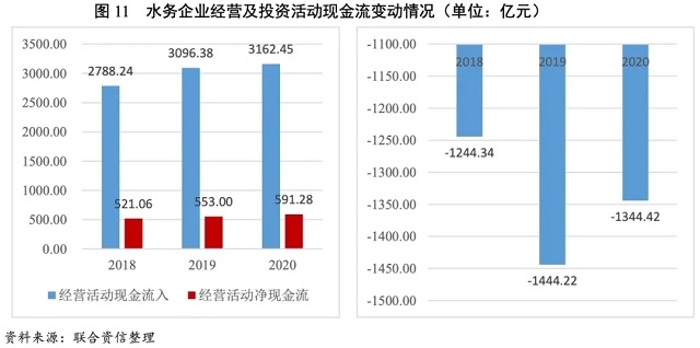 水務(wù)企業(yè)現(xiàn)金流狀況較好,收現(xiàn)能力較強(qiáng),投資活動(dòng)現(xiàn)金流出規(guī)模較大,未來(lái)隨著污水處理及水環(huán)境治理領(lǐng)域投資需求增長(zhǎng),預(yù)計(jì)大規(guī)模投資需求仍將持續(xù)。