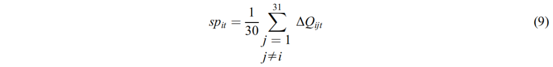 然后,一個省份的環(huán)境規(guī)制強(qiáng)度可根據(jù)該省與其他省份之間的相對污染價格的平均值計算得出,即: