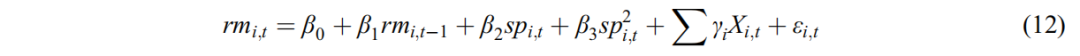 其中rm指區(qū)域資源錯配程度;sp指相對環(huán)境規(guī)制強(qiáng)度;X表示控制變量,包括區(qū)域物流水平(tur)、政府經(jīng)濟(jì)監(jiān)管能力(gfe1)、對外貿(mào)易依存度(trade)、工業(yè)企業(yè)所有制結(jié)構(gòu)(os1)和外資貢獻(xiàn)度(for);i表示區(qū)域,t表示時間。