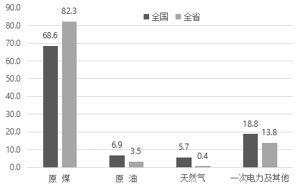 圖3:2019年全省與全國一次能源生產(chǎn)比重對比圖
