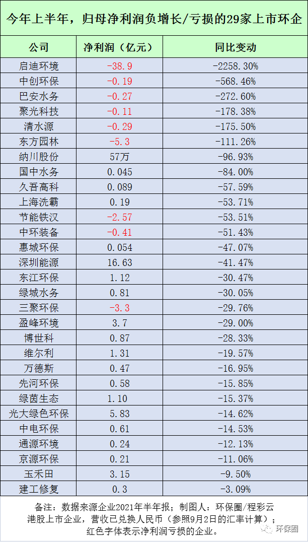 “虧損王”當(dāng)屬啟迪環(huán)境,上半年實現(xiàn)歸母凈利潤-38.9億元,同比驟減2258%,據(jù)悉近39億元的虧損中,有31.9億元虧損是由于出售股權(quán)、項目導(dǎo)致計提資產(chǎn)減值帶來的。