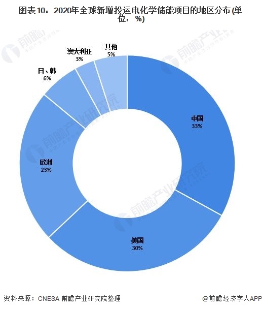 2020年,儲能行業(yè)雖遭受嚴重影響,但經(jīng)歷上半年的低迷之后,市場逐漸回暖,新增投運儲能項目,特別是電化學(xué)儲能項目的裝機規(guī)模逆勢而長。其中,中國、美國和歐洲占據(jù)了全球電化學(xué)儲能市場的主導(dǎo)地位,三者合計占全球電化學(xué)新增投運總規(guī)模的86%。