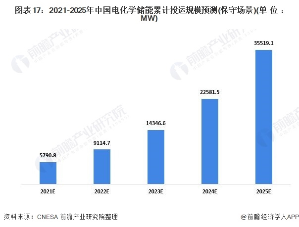 根據(jù)《儲能產(chǎn)業(yè)研究白皮書2021》,2021-2025年我國儲能市場趨勢及前景如下: