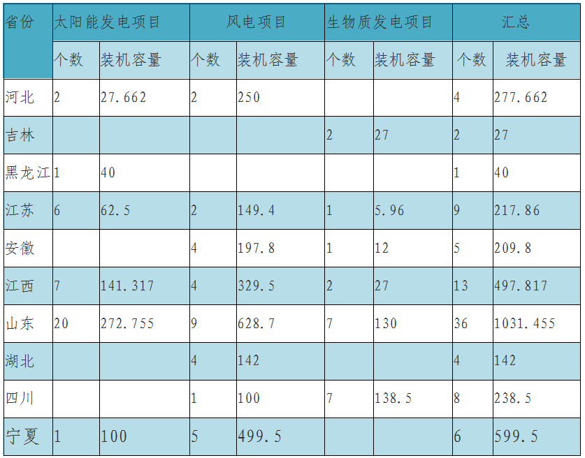 以下為本次公布的集中式可再生能源發(fā)電項目詳情: