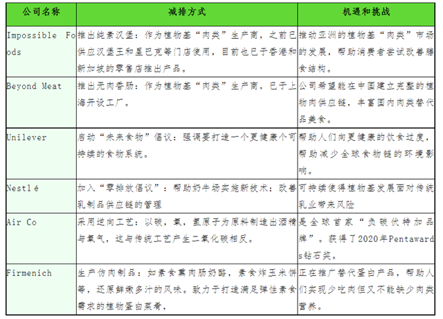 在企業(yè)產(chǎn)品管理方面,企業(yè)通過打造“未來膳食”理念,改變?nèi)藗兊膫鹘y(tǒng)飲食結(jié)構(gòu),通過現(xiàn)代化的食品生產(chǎn)系統(tǒng),如“人造肉”降低食品生產(chǎn)階段的碳排放。例如Beyond Meat公司,計劃在中國建立完整的植物肉供應(yīng)鏈,豐富國內(nèi)肉類替代品美食。除此以外,Unilever啟動“未來食物”倡議,強(qiáng)調(diào)要打造一個更健康的可持續(xù)的食物系統(tǒng),幫助人們向更健康的飲食過渡,幫助減少全球食物鏈的環(huán)境影響。雖然利用現(xiàn)在的食品生產(chǎn)技術(shù)可以實現(xiàn)“人造蛋白”等低碳替代食品規(guī)模生產(chǎn),但其是否能被傳統(tǒng)消費者廣泛接受仍然需要證實。