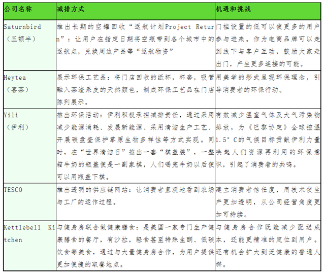 在消費者管理方面,企業(yè)通過推進(jìn)與消費者互動和提高產(chǎn)品碳排放透明度等方式,提高消費者環(huán)保理念。例如,Saturnbird推出長期的空罐回收“返航計劃Project Return”,讓用戶在指定日期將空瓶帶到各個城市中的返航點,兌換周邊產(chǎn)品等“返航物資”,減少包裝的環(huán)境影響。除此以外,伊利在“世界清潔日”推出一套“棋蓋裝”,一整箱牛奶的瓶蓋便是一副象棋,人們喝完牛奶以后便可以用瓶蓋下棋,增強(qiáng)消費者環(huán)境意識。企業(yè)在消費者管理方面采取措施可以有效提高消費者環(huán)境責(zé)任意識,并提高企業(yè)品牌知名度,但企業(yè)在前期需要投入一定宣傳成本,可能在一定程度上增加企業(yè)的成本負(fù)擔(dān)。