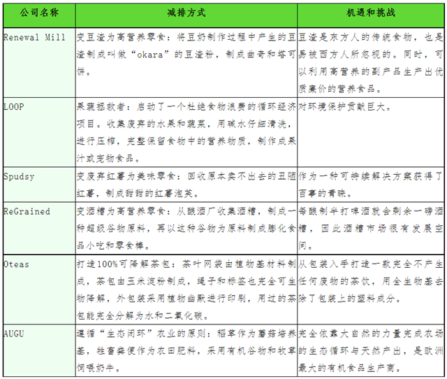 在企業(yè)踐行循環(huán)經(jīng)濟(jì)理念方面,企業(yè)通過產(chǎn)業(yè)鏈互補和結(jié)合等合作方式,通過利用副產(chǎn)物制造有價值的食品,減少生產(chǎn)消耗。例如,Renewal Mill公司將豆奶制作過程中產(chǎn)生的豆渣制成叫做“okara”的豆渣粉,制成曲奇和塔可餅。除此以外,ReGrained公司從釀酒廠收集酒糟,制成一種超級谷物原料,再以這種谷物為原料制成膨化食品小吃和零食棒。食品循環(huán)經(jīng)濟(jì)發(fā)展有助于充分實現(xiàn)食品價值,但是在食品生產(chǎn)過程中,可利用的副產(chǎn)物價值有限,且其經(jīng)濟(jì)回報有待考究。