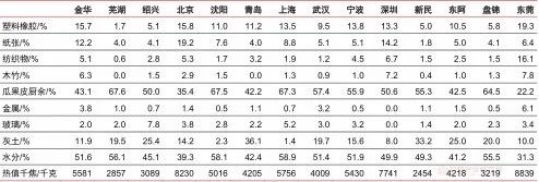 2015年11城生活垃圾組分占比及發(fā)電量情況