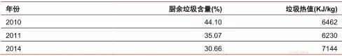 深圳市 2010-2014 年廚余垃圾含量及垃圾熱值