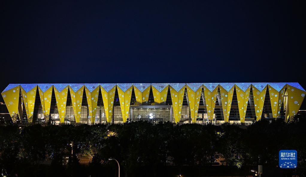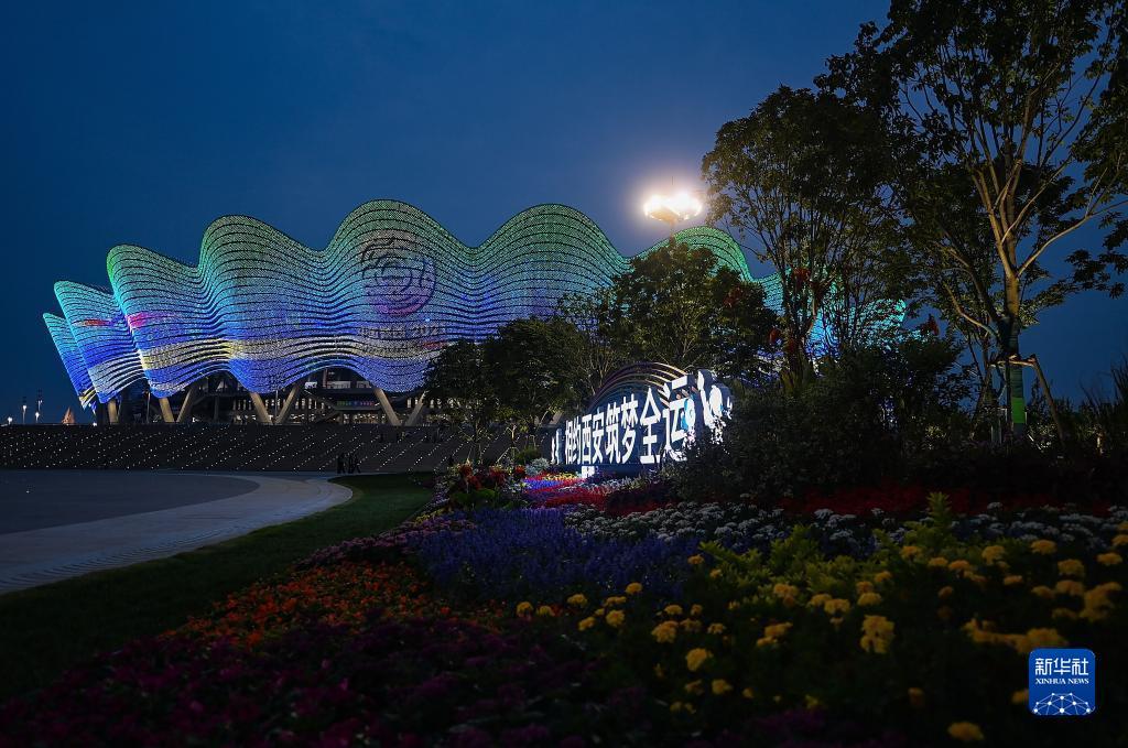 這是9月15日拍攝的開幕式前的西安奧體中心體育館外景。當(dāng)日,第十四屆全國(guó)運(yùn)動(dòng)會(huì)開幕式在西安奧體中心體育場(chǎng)舉行。新華社記者 王曦 攝