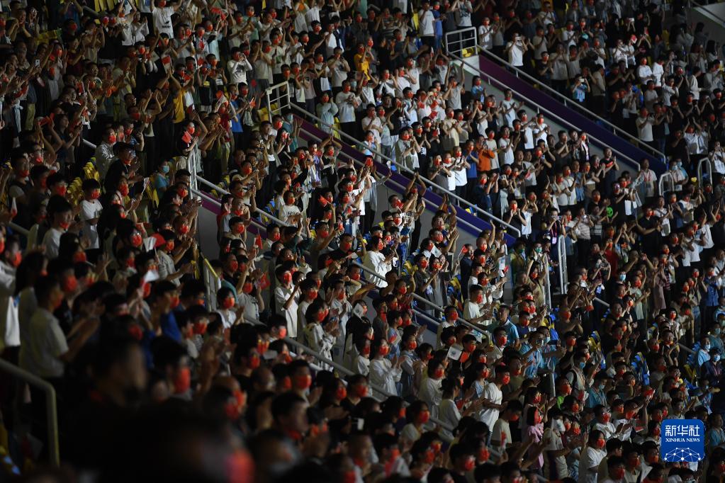 9月15日,觀眾在開幕式上歡呼。當(dāng)日,第十四屆全國(guó)運(yùn)動(dòng)會(huì)開幕式在西安奧體中心體育場(chǎng)舉行。新華社記者 陶亮 攝