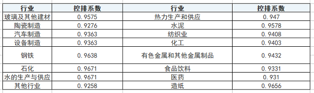 行業(yè)控排系數(shù)(具體數(shù)值見附件1-2)是用于核定企業(yè)既有設(shè)施排放配額的參數(shù)。依據(jù)各行業(yè)減排成本、減排潛力、行業(yè)競爭力、各行業(yè)碳排放歷史變化趨勢等因素綜合測算確定。