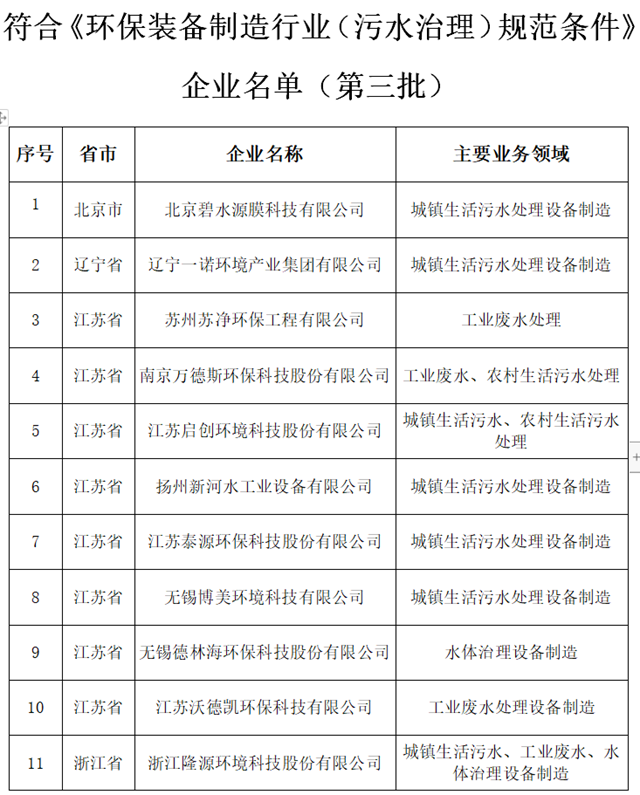 2. 符合《環(huán)保裝備制造行業(yè)(污水治理)規(guī)范條件》企業(yè)名單(第三批)
