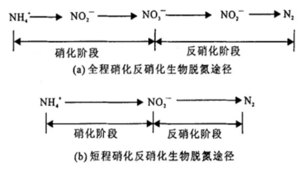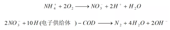 所以其生物脫氮過程比一般硝化—反硝化反應(yīng)進(jìn)程較快,脫氮效率高。其主要方程式: