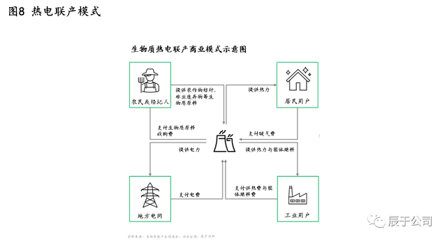 盈利壓力一方面將促進(jìn)行業(yè)洗牌,在優(yōu)勝劣汰的過程中預(yù)計(jì)行業(yè)集中度將逐步提升,民營企業(yè)的份額會逐步降低;另一方面,行業(yè)也在積極探索新的商業(yè)模式,提升項(xiàng)目盈利性,其中熱電聯(lián)產(chǎn)是主要的方向(見圖8)。相比單純發(fā)電賣錢,熱電聯(lián)產(chǎn)在發(fā)電過程中產(chǎn)生的剩余熱量也通過向居民或工業(yè)用戶供熱的方式來獲取收入,能量利用率得到提升,經(jīng)濟(jì)效益和社會效益都更好。