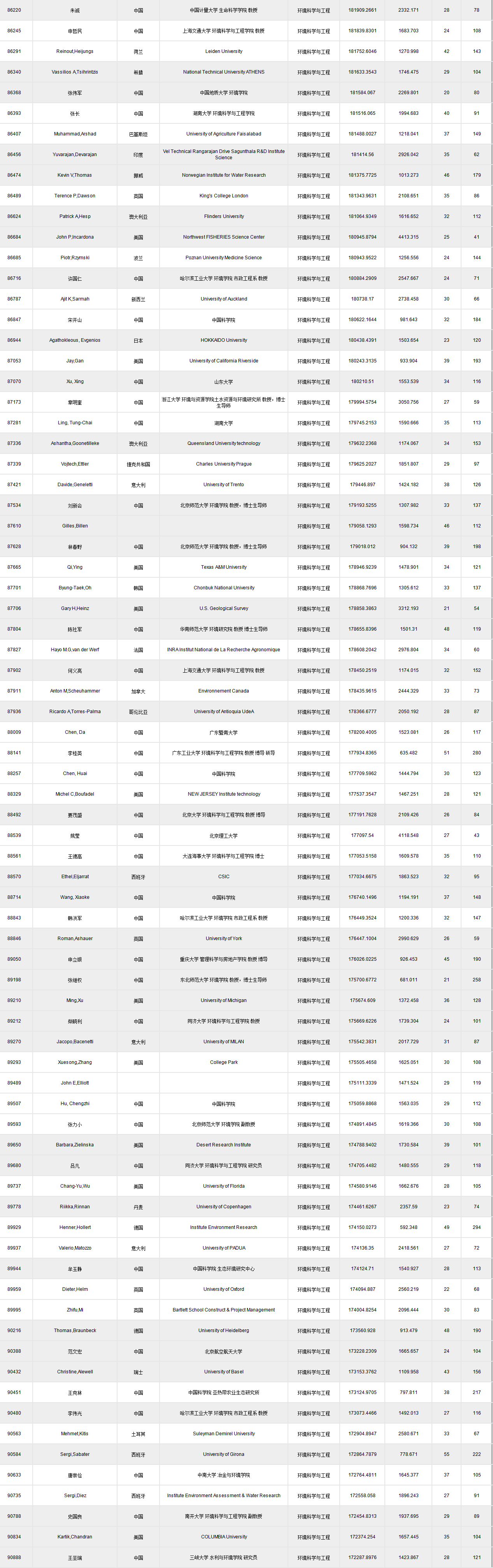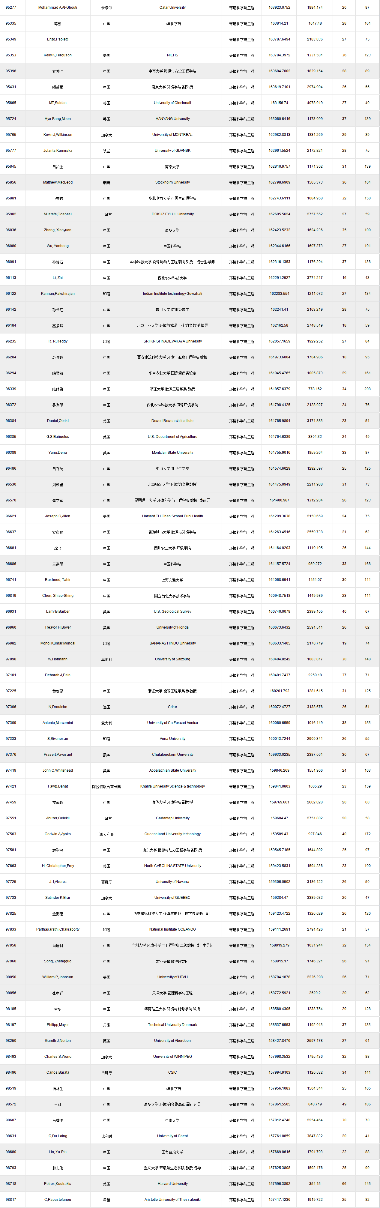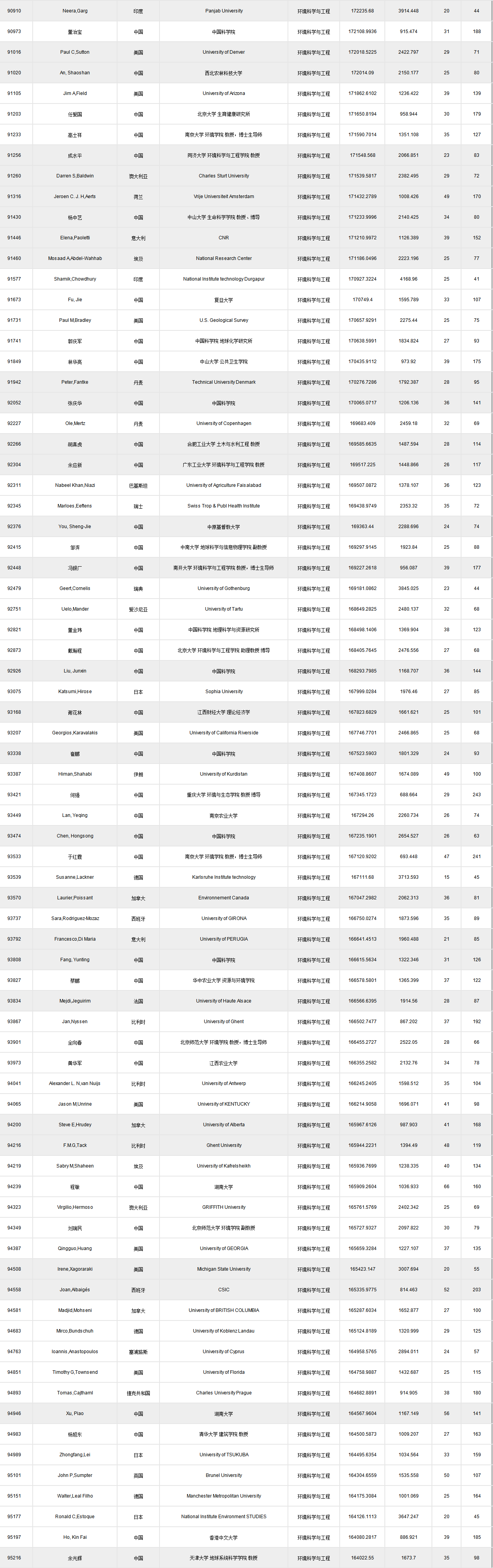 全球頂尖前10萬科學(xué)家排名.xlsx
