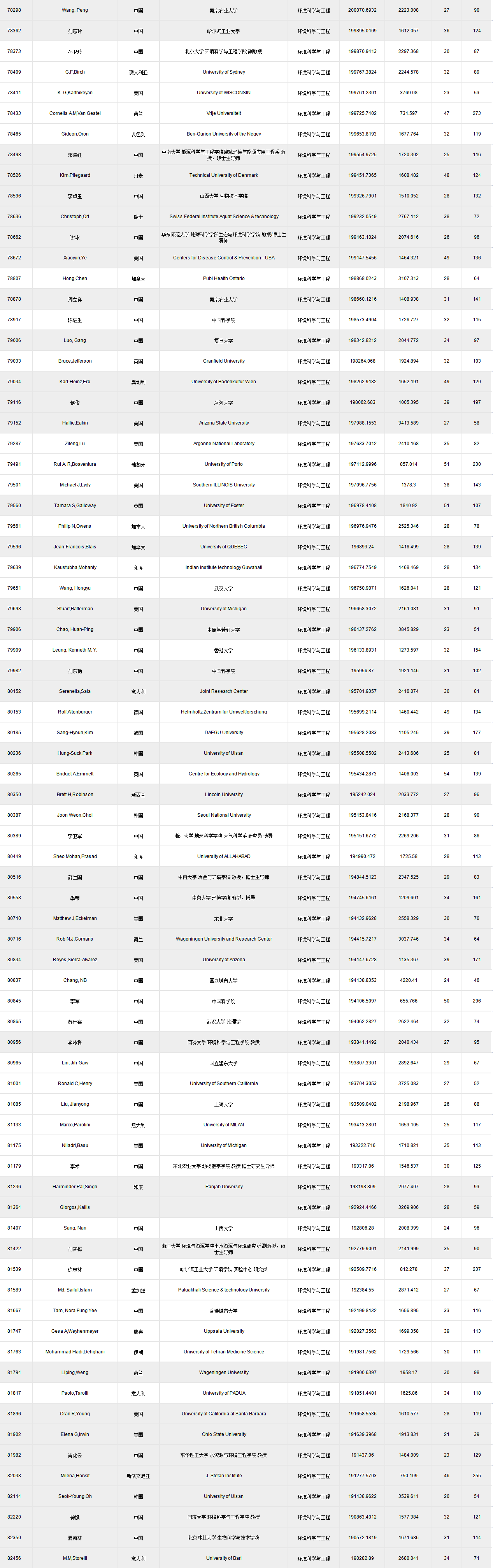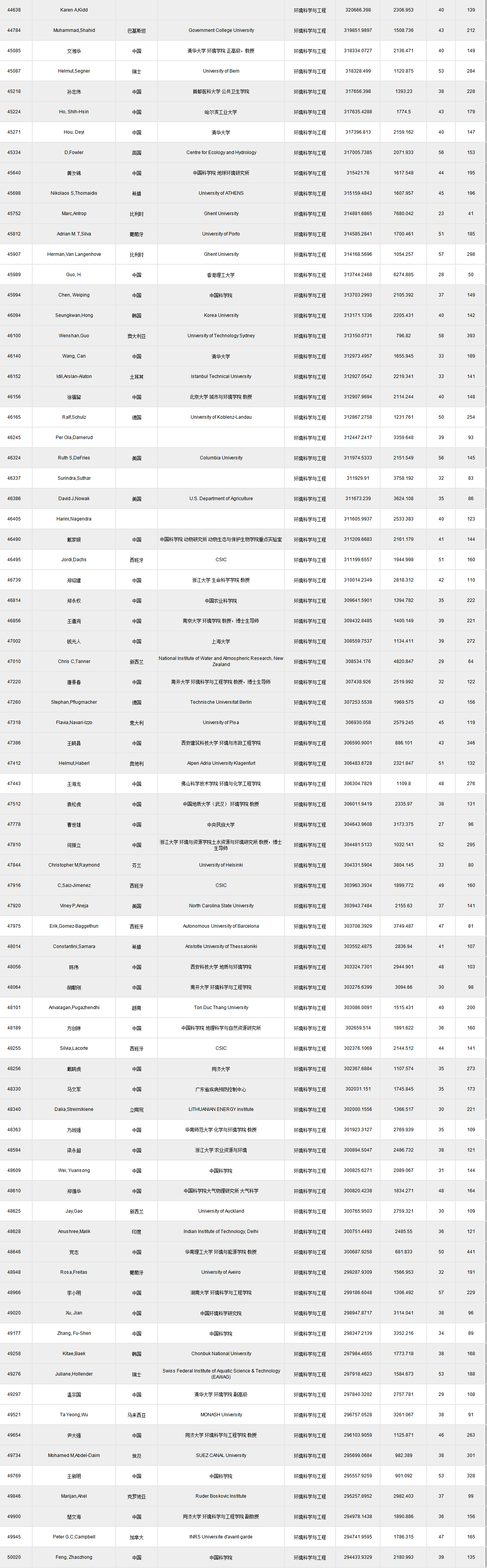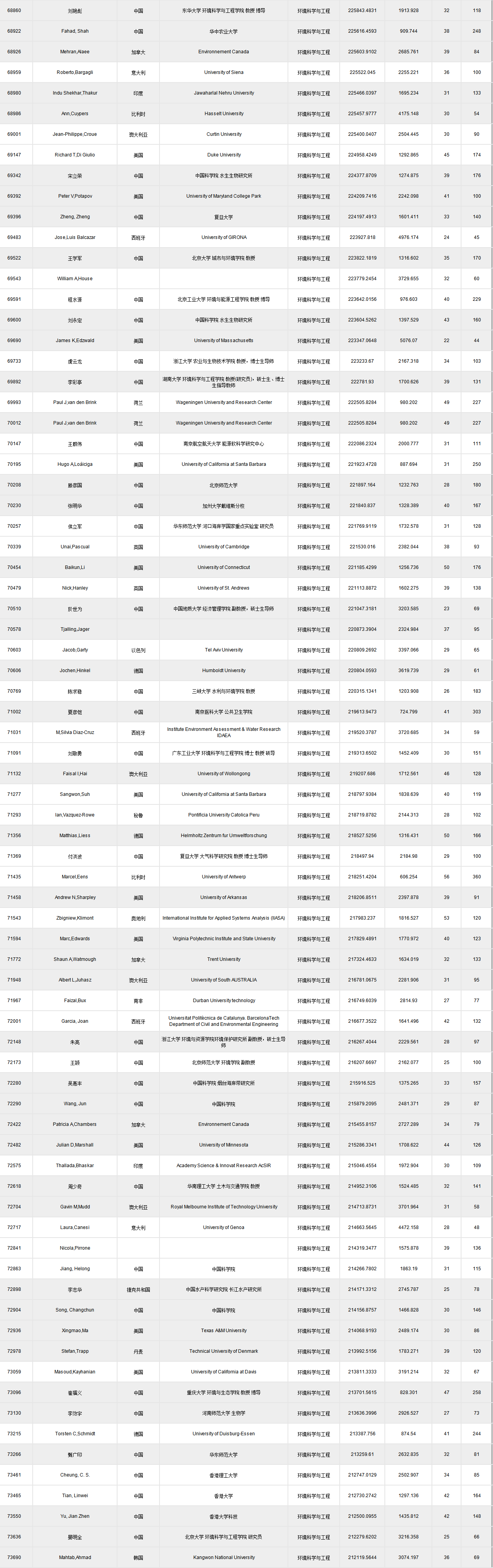 全球頂尖前10萬科學(xué)家排名.xlsx