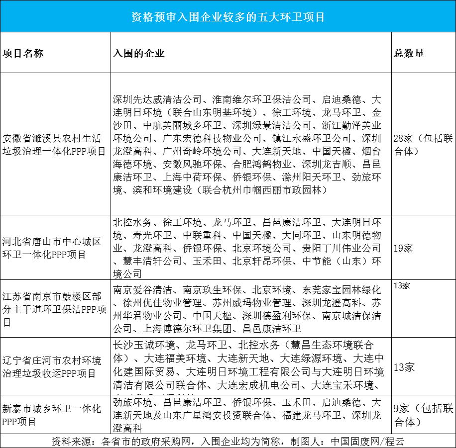 時至今日,進駐的企業(yè)都在紛紛擴地盤,尋求優(yōu)質項目,企業(yè)之間的競爭愈發(fā)激烈,不少環(huán)衛(wèi)項目在資格預審階段,便吸引10-20多家企業(yè)角逐。