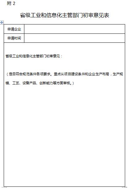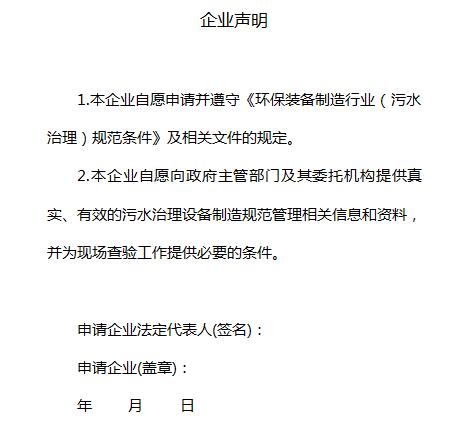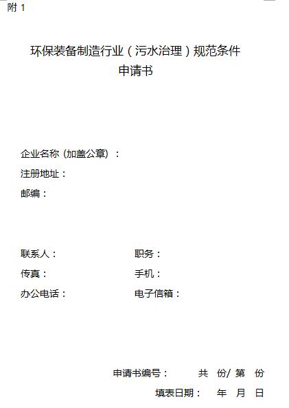 3.申請企業(yè)需編制《環(huán)保裝備制造行業(yè)(污水治理)規(guī)范條件申請書》(格式見附1),并按要求提供相關(guān)說明材料。各省級工業(yè)和信息化主管部門依據(jù)本規(guī)范條件,對申請材料進行審查并提出推薦意見(格式見附2)。